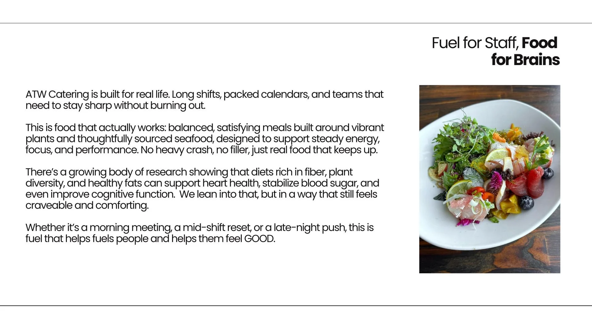 It All Begins Here FOOD FOR LIFE. Made to support your health, and the people who support everyone else’s.Food for your team, your patients, and their future.